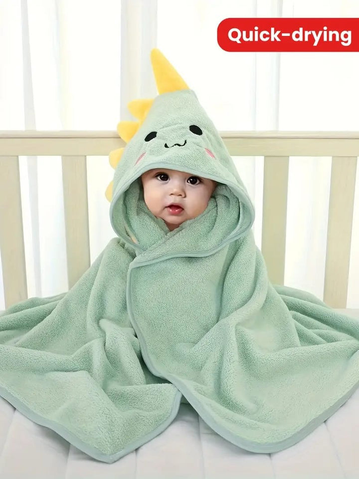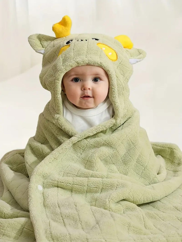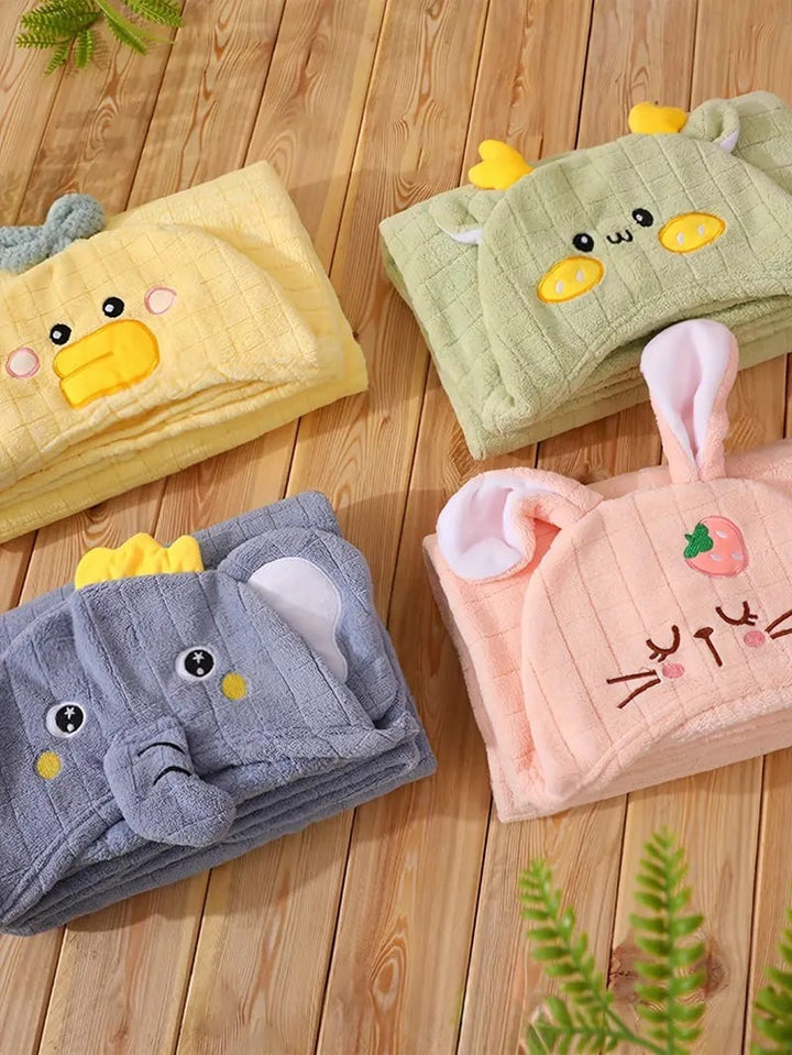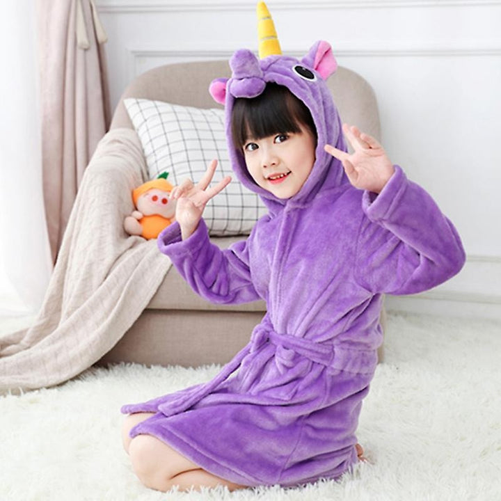 Kids Cute & Soft Hooded Bathrobe with Cute 3D Animal Design, Button-Up Collar, and Thick Polyester - Machine Washable, Perfect for Fall/Winter